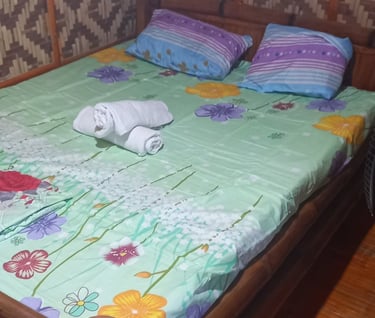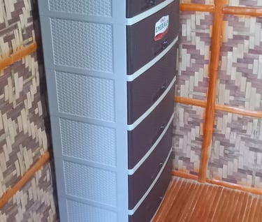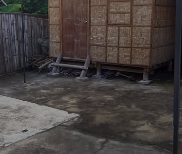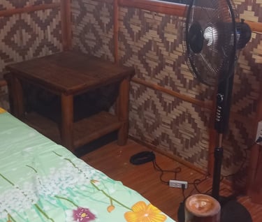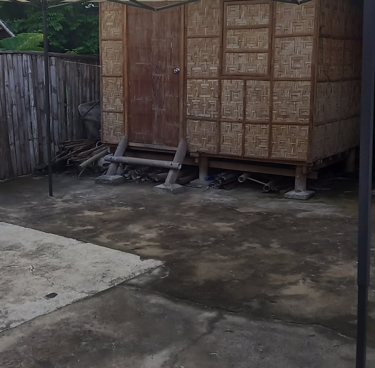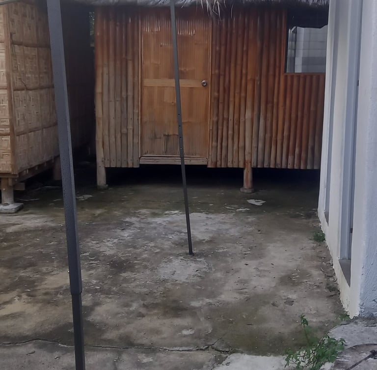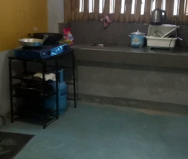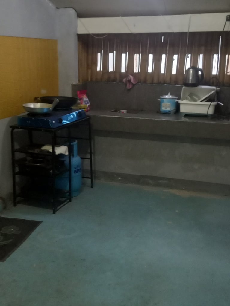 there is two nipa huts in the dive shop and 2 bathrooms and shared kitchen